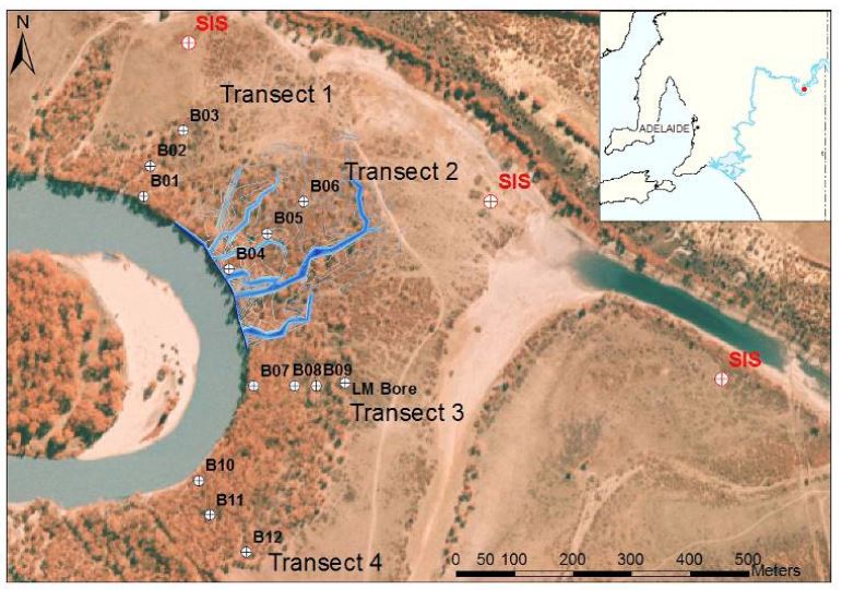 Those field physical property measurements confirmed that the water conductivity at Bookpurnong is at the order of 1 S/m. The actual conductivity of the ground may be lower if taking into account the porosity, but it is still much higher than the usual earth media. Also, the overall conductivity is higher towards the bank than in the flush zone; and higher near the surface than at depth.