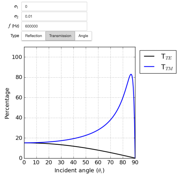 Fig. 75 and Fig. 76 are generated by the Reflection and Refraction app that you can adjust conductivity of each medium, and obtain corresponding transmission angle, power reflection and transmission coefficients as a function of incident angle. Below link will direct you to the app:
